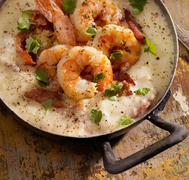 Jalapeno Pale Ale verleiht diesem Rezept für Tieflandgarnelen und Grütze einen zusätzlichen Würzkick und die dringend benötigte Helligkeit.