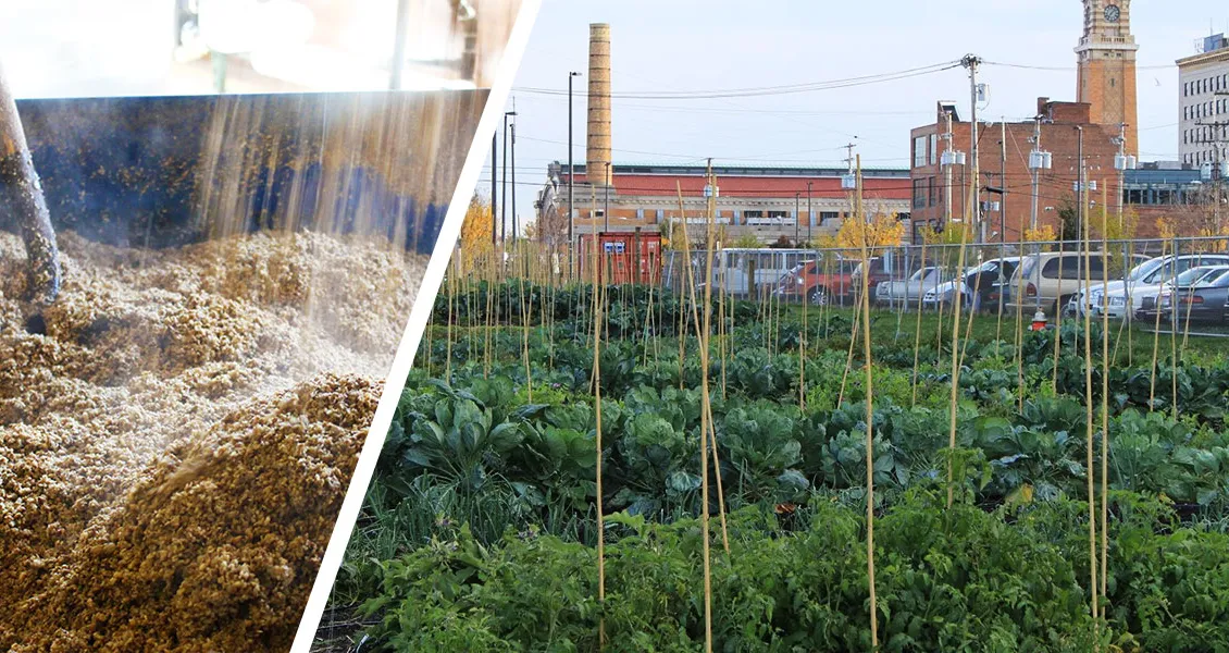 Urban Farm der Great Lakes Brewing Company in Cleveland, Ohio.„Ich denke, wir haben Biertreber auf vielfältigere Weise wiederverwendet als jede andere Brauerei, die ich mir vorstellen kann“, sagt Saul Kliorys Nachhaltigkeitsmanager Great Lakes Brewing Company mit Sitz in Cleveland. Wir verarbeiten es in Brezeln, die wir hier in unserem Restaurant servieren. Im Jahr 2010 waren wir an der Gründung der damals größten städtischen Farm des Landes, der Ohio City Farm, beteiligt. Zur Verbesserung der Bodenqualität haben wir dort Biertreber eingesetzt.