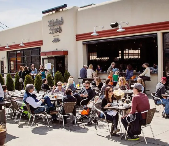 Im Erdgeschoss herrscht eine rustikalere, bierzentrierte Atmosphäre. Dekorative Fässer schmücken die Bar und den Verkostungsraum, die an das Brauhaus mit 15 Fässern angrenzen, einen weiteren Sitzbereich im Freien und einen klimatisierten offenen Gärraum, in dem die wertvollen sauren Biere von Wicked Weed geboren und gezüchtet werden.